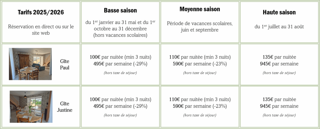 Les locations de nos gîtes se font à la semaine du samedi au samedi.